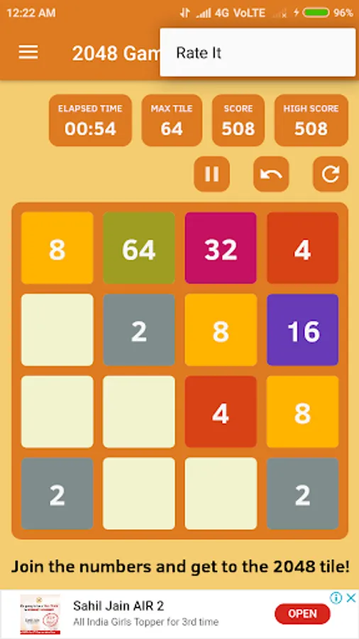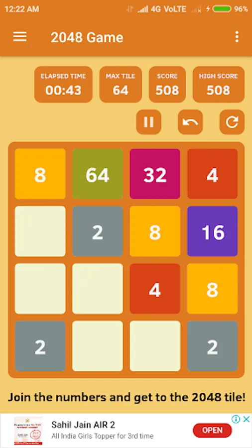 Swipe to move the tiles. When two tiles with the same number touch, they merge into one! Reach 2048.