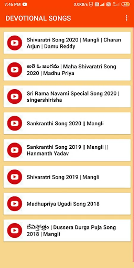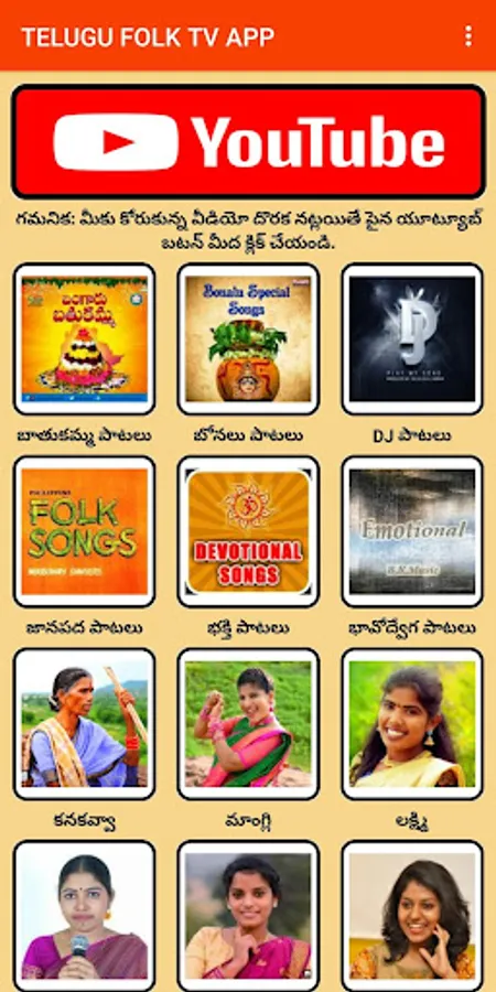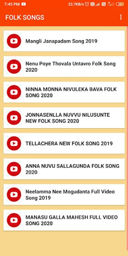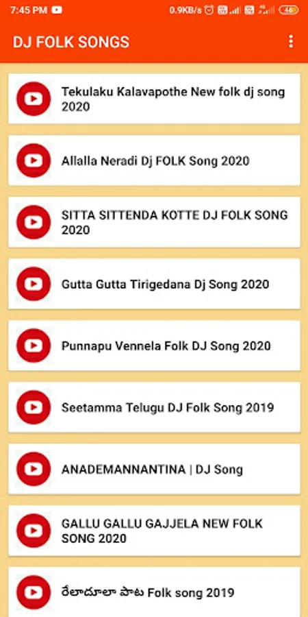 This app also provides on app YouTube player for missing songs in app and you can browse your favorite song on YouTube player. No copying problem no storage problem. Just click and play your favorite Telugu folk video song.