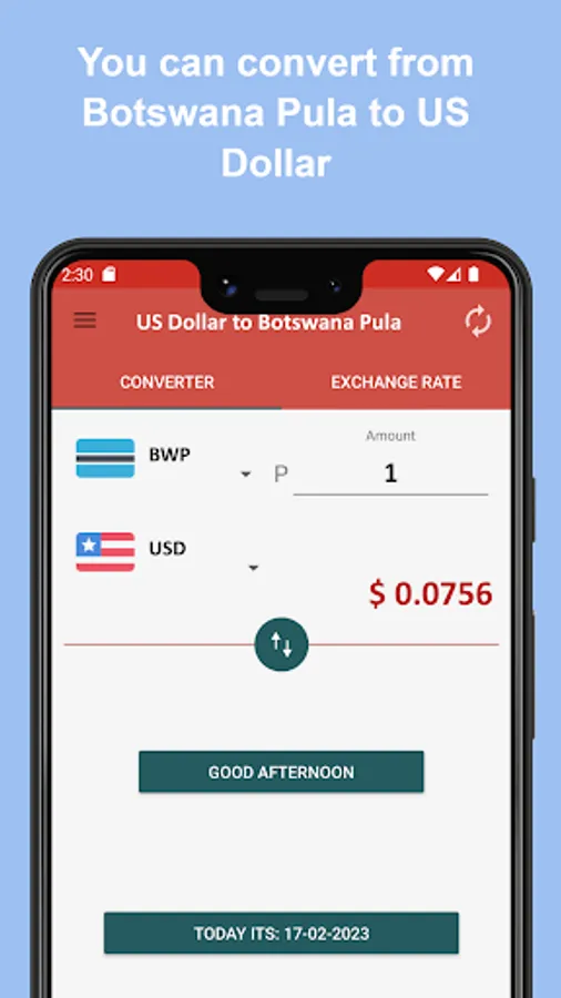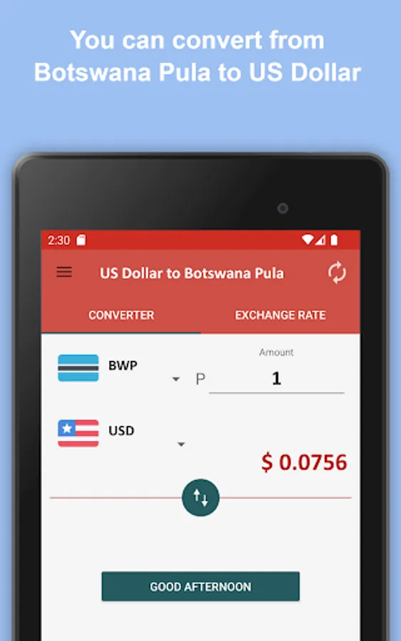 There is always an exchange rate gap between different countries. Being one of the world's major currencies, the value of the US dollar should be known in all regions. This currency converter app is very useful to convert US dollars to Botswana pula through a simple widget. However, it helps you with better recognition of the purchase you have in US or Botswana currencies.