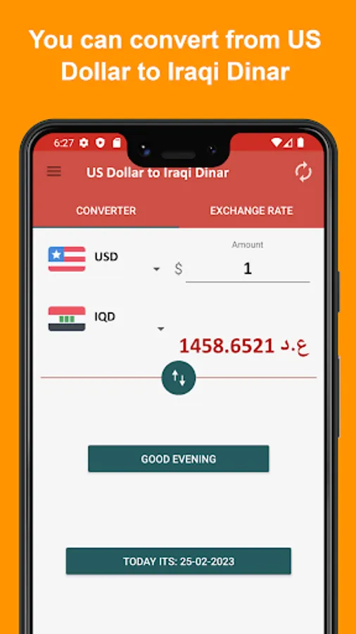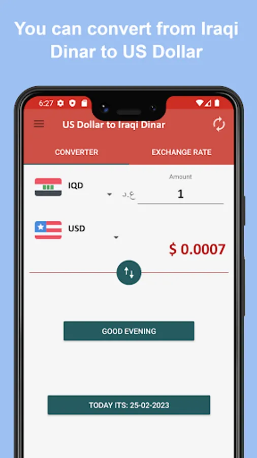 This currency converter app is an efficient US dollar to Iraqi dinar converter to keep users updated. It works through a smart algorithm and obtains data on the current exchange rate of the US dollar in the market. Users can check the exchange rate today and convert USD to IQD and IQD to USD in a few seconds.