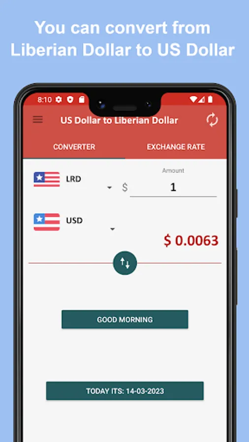 This currency converter app is an efficient US dollar to Liberian dollar converter to keep users updated. It works through a smart algorithm and obtains data on the current exchange rate of the US dollar in the market. Users can check the exchange rate today and convert USD to LRD and LRD to USD in a few seconds.
