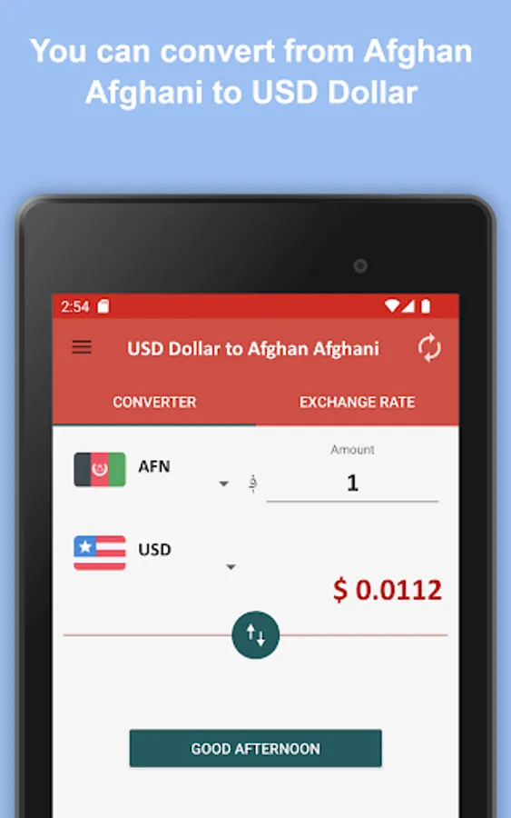 There is always a currency rate gap between different countries. Being one of the world's leading currencies, the value of US dollar should be known in all regions. This currency converter app is super helpful to convert USD dollar to Afghan afghani through a simple widget. However, it assists you with better acknowledgment of acquisition you have in USA or Afghan currencies.