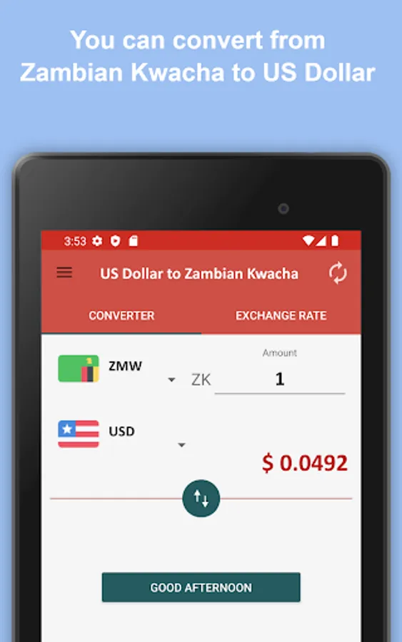 There is always an exchange rate gap between different countries. Being one of the world's major currencies, the value of the US dollar should be known in all regions. This currency converter app is very useful to convert US dollars to Zambian kwacha through a simple widget. However, it helps you with better recognition of the purchase you have in US or Zambian currencies.