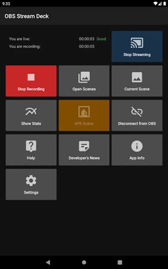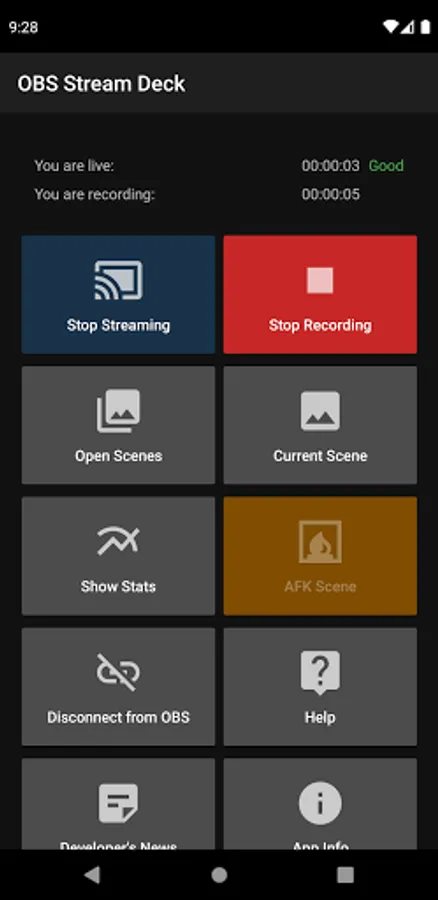 The only prerequisite is a running OBS instance with the Palakis WebSocket plugin installed (see in-app instructions) and you are ready to remotely control your OBS Studio.