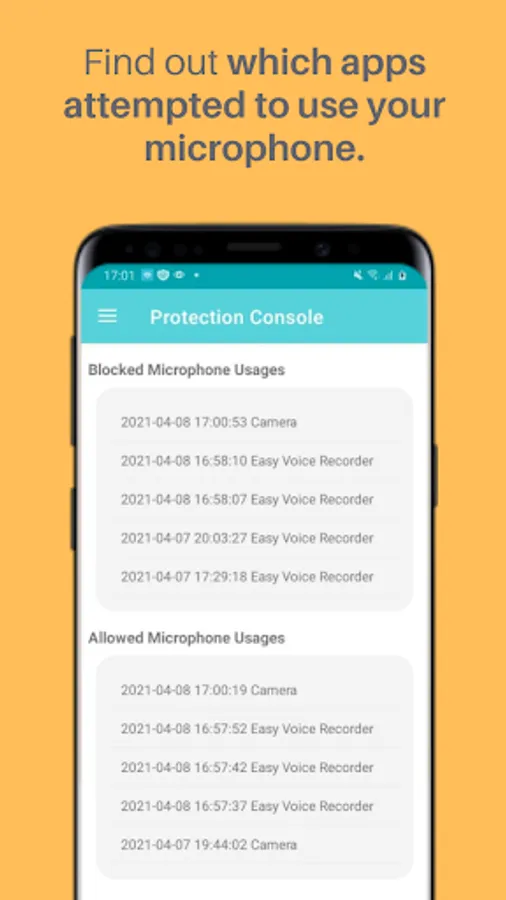 ✔ Find out which apps attempted to use your microphone when it was protected (on mute).
