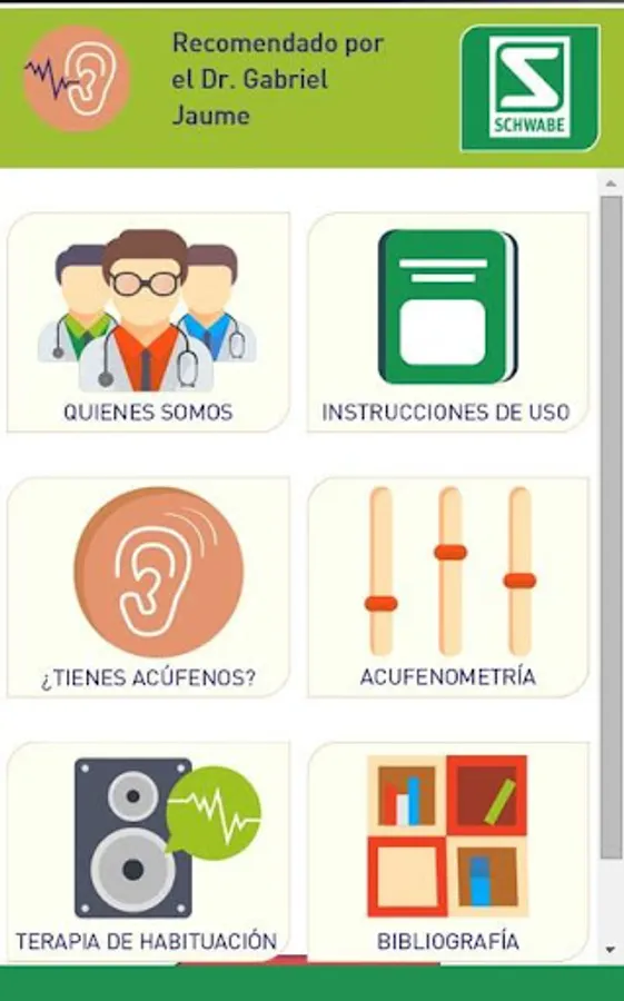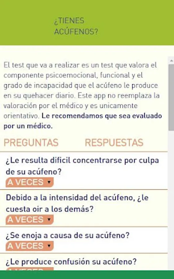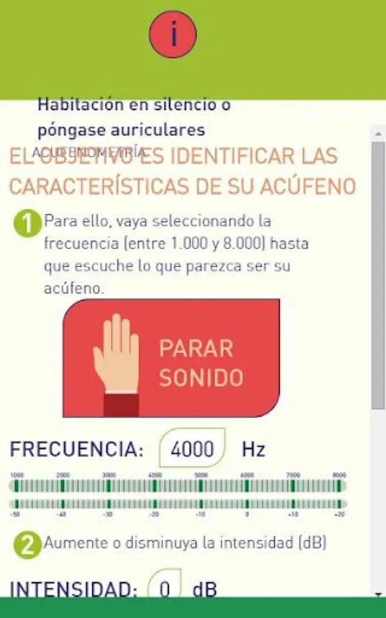 This application will allow you to perform a test to see if you suffer tinnitus. It also incorporates a tool that allows to know the frequency and db your tinnitus. It also allows exercises with white noise and values acufenometria (habituation therapy).
