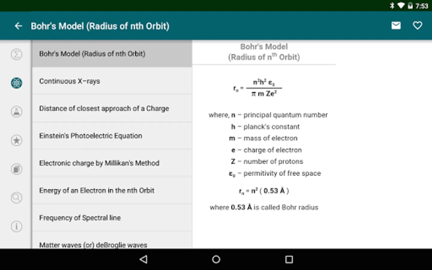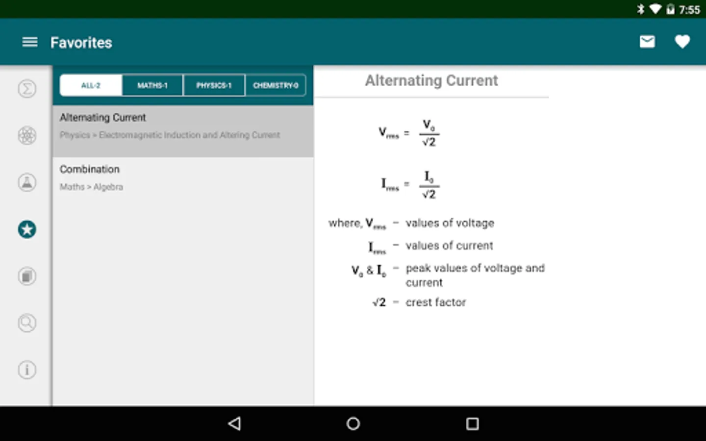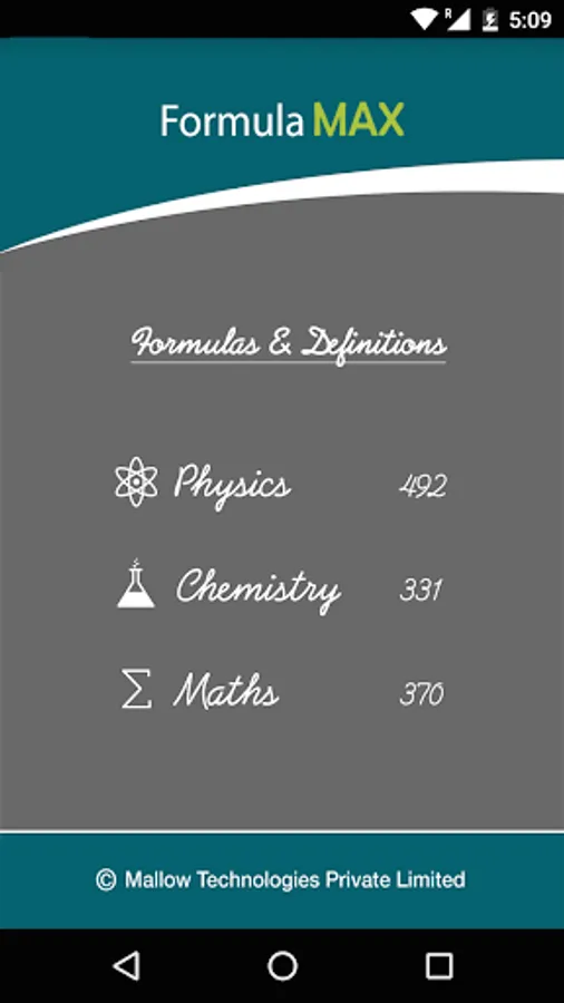 Formula MAX is an one stop solution for all the scientific formulas in the areas of Physics, Chemistry and Maths. It gives you around 1150+ formula, definitions and values.