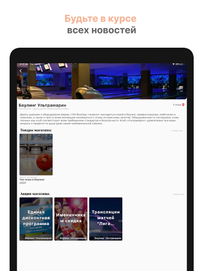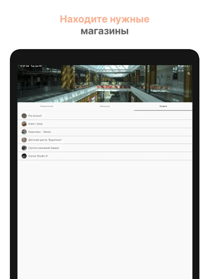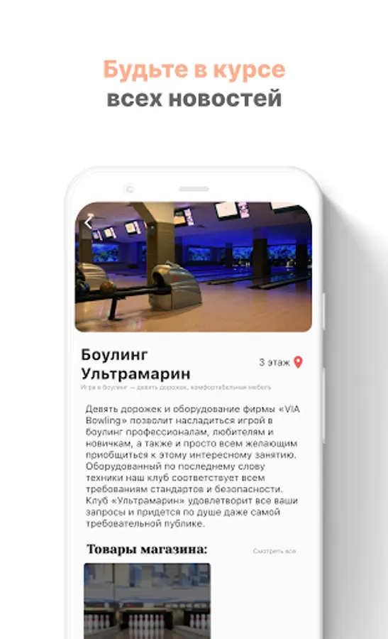 - the ability to subscribe to PUSH notifications about the news of the shopping center;