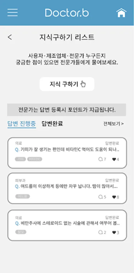 Through 'obtaining knowledge', a place of knowledge communication on the Dr.B platform,