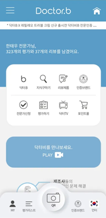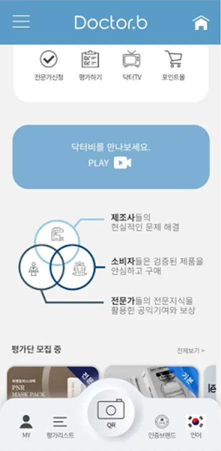 Dr.B platform is a multi-platform that provides evaluation and advice on ideas and products of small and medium-sized businesses by various experts centered on medical experts. Experts with rich knowledge and know-how can help SMEs to strengthen their products' practical competitiveness and contribute to the growth of related industries. In addition, through the new paradigm of Dr. B certification service, you can increase the reliability of Korean products worldwide. The platform has a virtuous cycle structure so that benefits and rewards for each member's participation and know-how return.