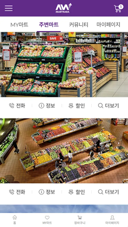 It provides a variety of information such as events, cooking recipes, today's discount products, and mart shopping.