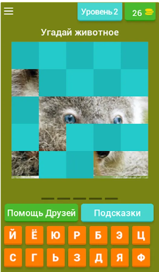"Guess the animals on fragments" - a quiz on the theme of wildlife, which will perfectly suit both adults and children! Each level represents a photo of an animal, divided into 4 parts. Your task in the photographic fragments is to guess what kind of fauna disappeared in this puzzle.