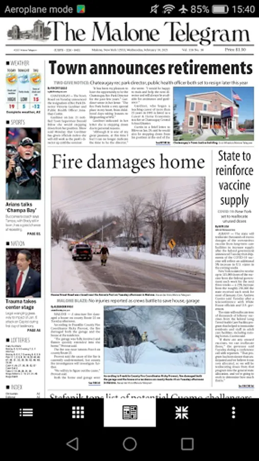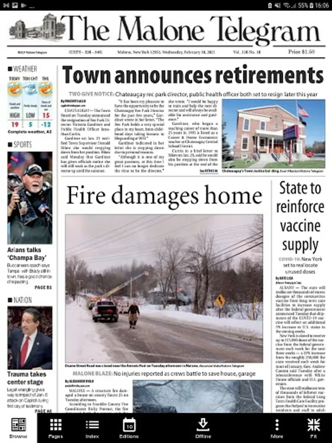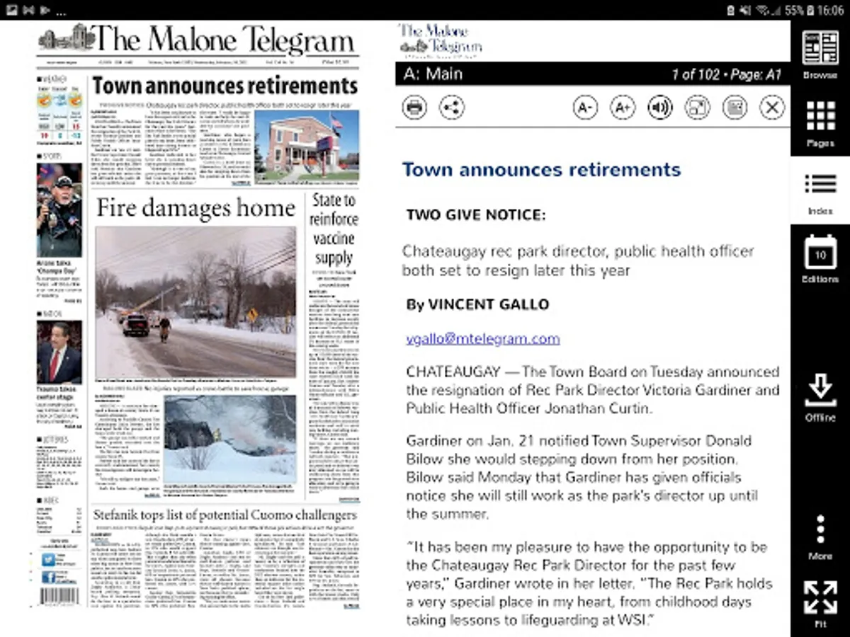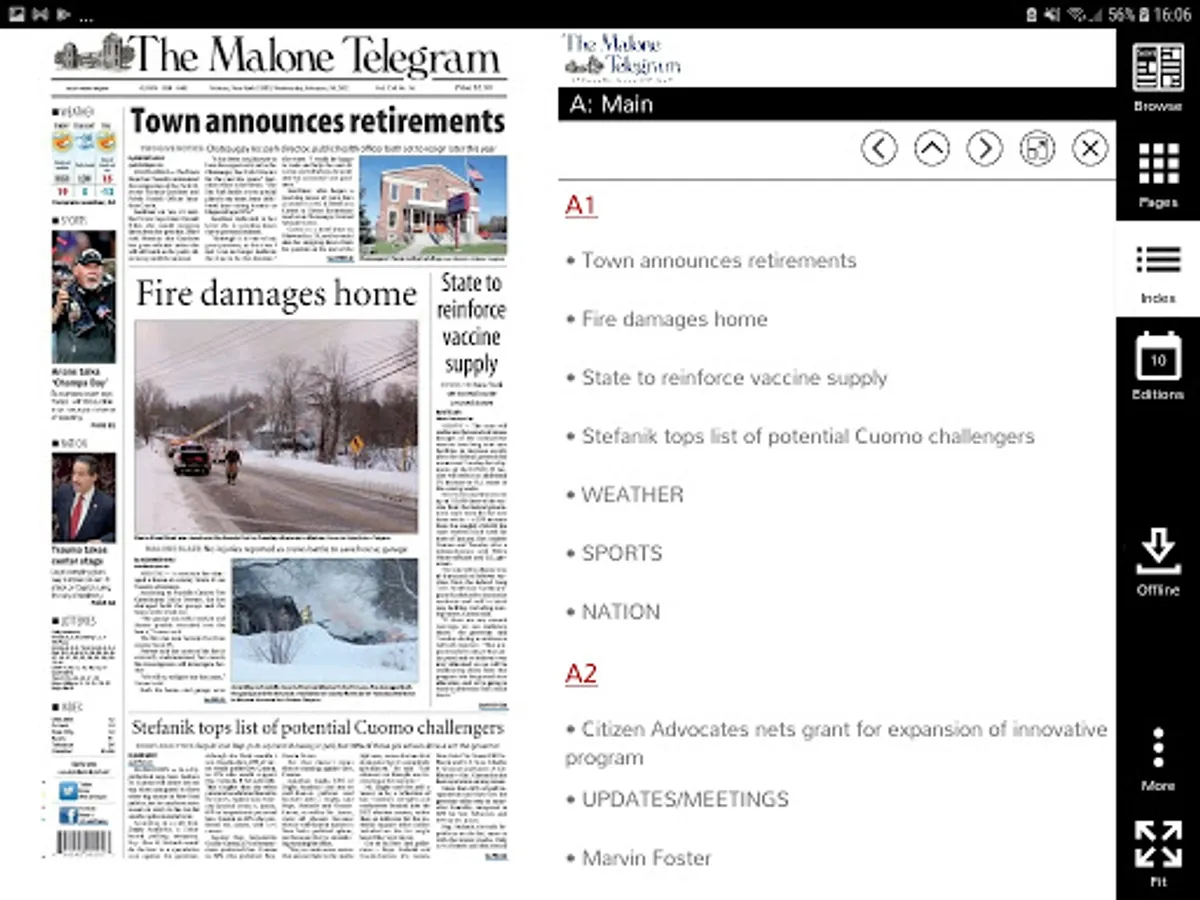 Subscribers can access all the sections, articles, photos and advertisements in The Malone Telegram exactly as they appear in print on their Android tablet. Subscribers also have access to the e-edition on computers and mobile devices. Subscribers also can access: