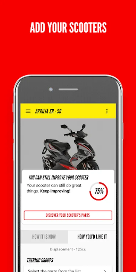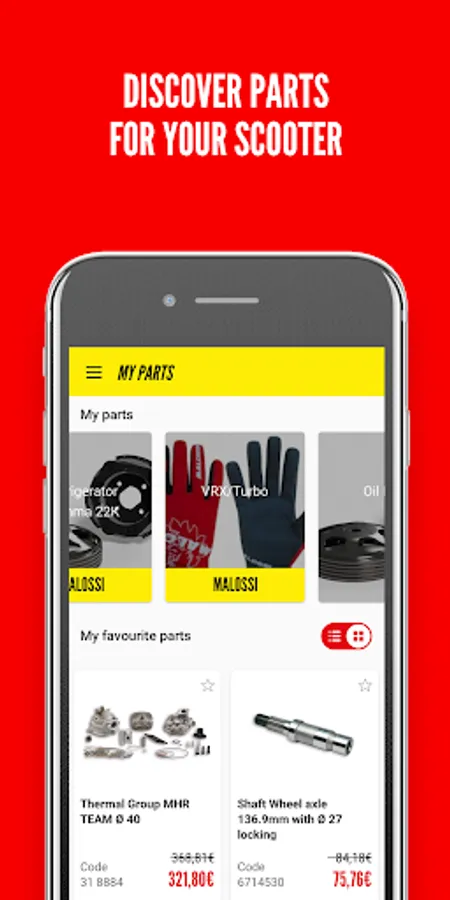 You can manage your vehicles in a Malossi perspective! You can tune them virtually in a dedicated garage, keep trace of the replaced spare parts and indicate those you would like to replace, with the mood you approach your vehicle.