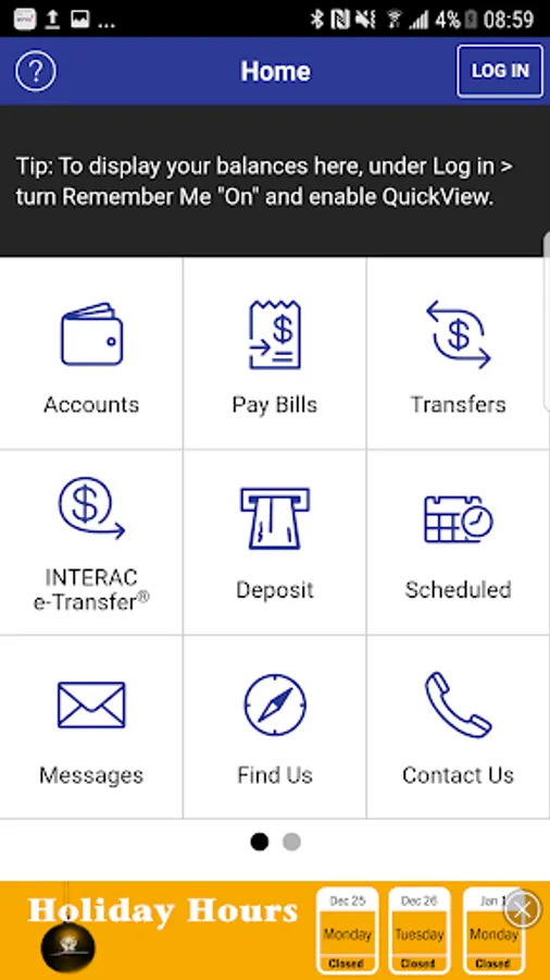 To take advantage of the full functionality of this app, you must already be registered and have logged in to online banking. If you are not an online banking member, you can still use the Branch/ATM locator, Rates and our Contact Us information.