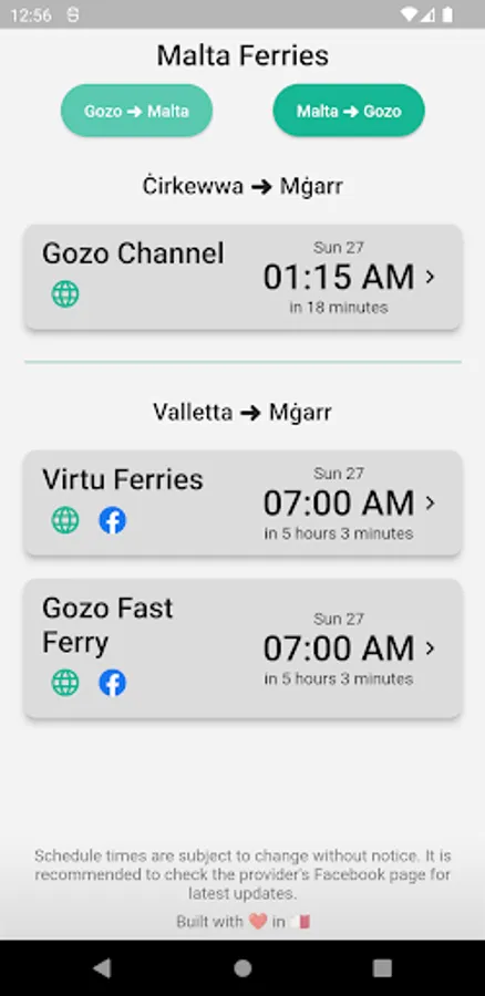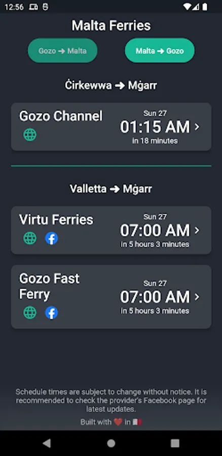 Keep up to date with the latest ferry schedules in Malta and Gozo.