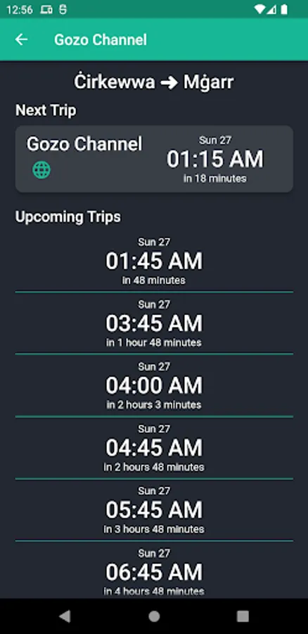 • Look through future ferry times.