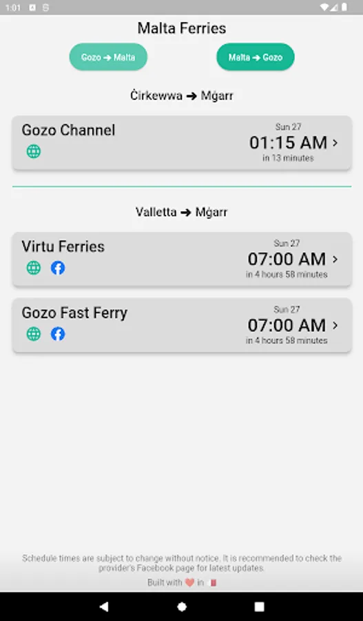 • Easy access to ferry services websites and social media pages.