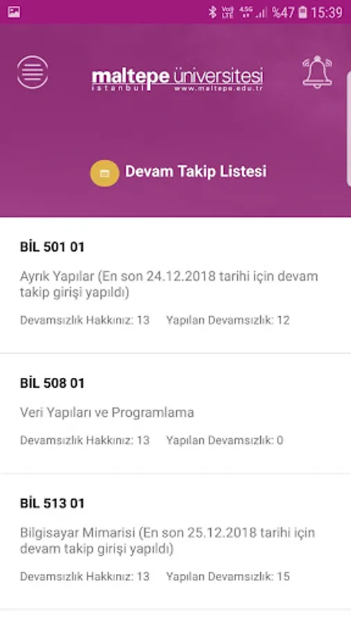 With the Maltepe University Mobile App, you can easily do the following: