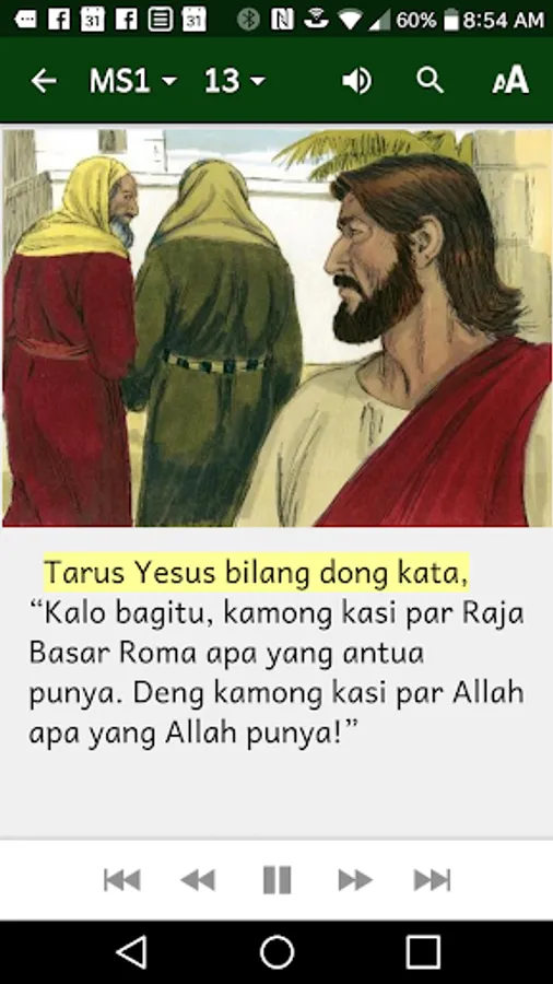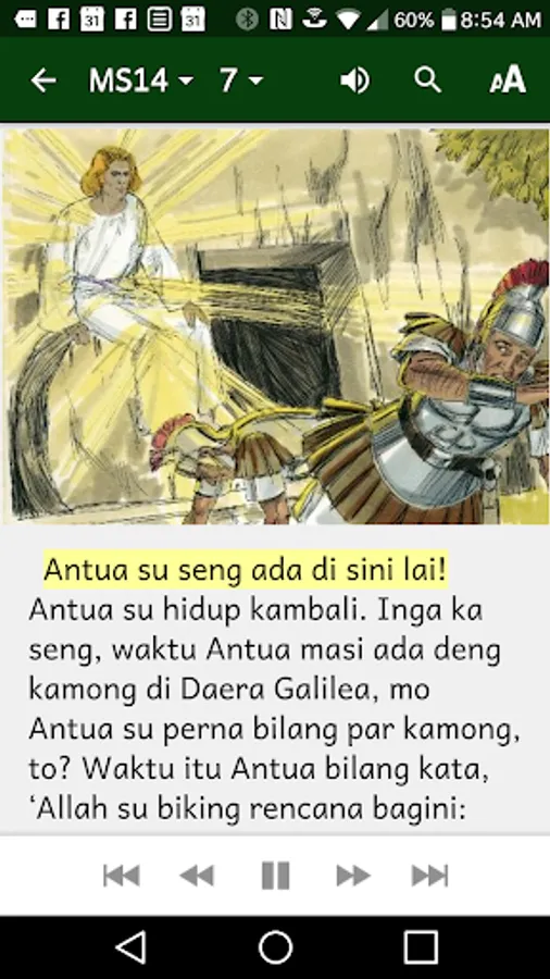 These applications are telling stories Passion Week, Easter and Ascension, in the Malay language used in Aru Aru Islands, Maluku, Indonesia. The application comes with a text from the Gospel of Luke, images, and audio. There are 100% free