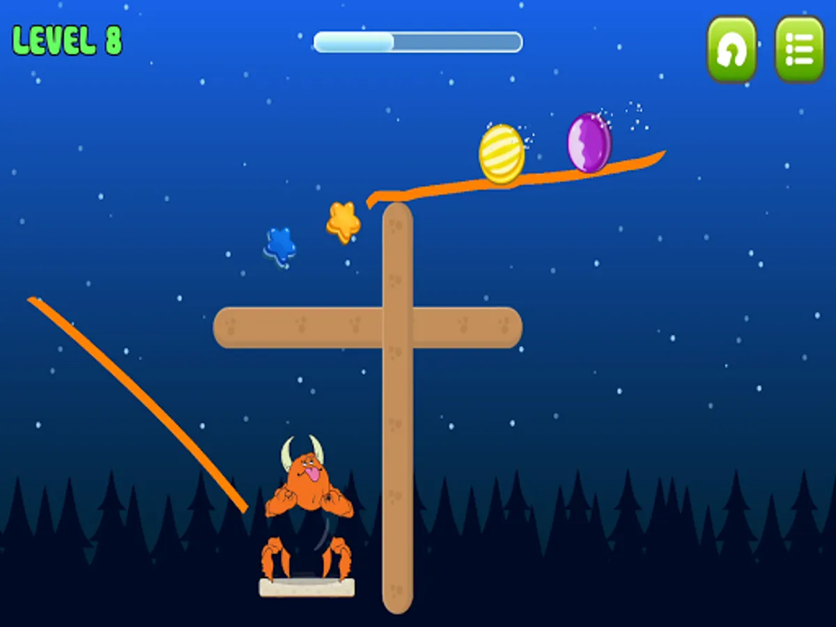 Snack Monster – 2D brain it on physics game where you should feed a hungry pet monster. Your task is to draw lines and deliver the snacks and candies to the glass belly of pet monster and make him happy. Be aware of bombs and spikes, cut rope on your path, brain it on your imagination and pass all 100 levels! Like in sandbox game you can make physics experiments to complete level.