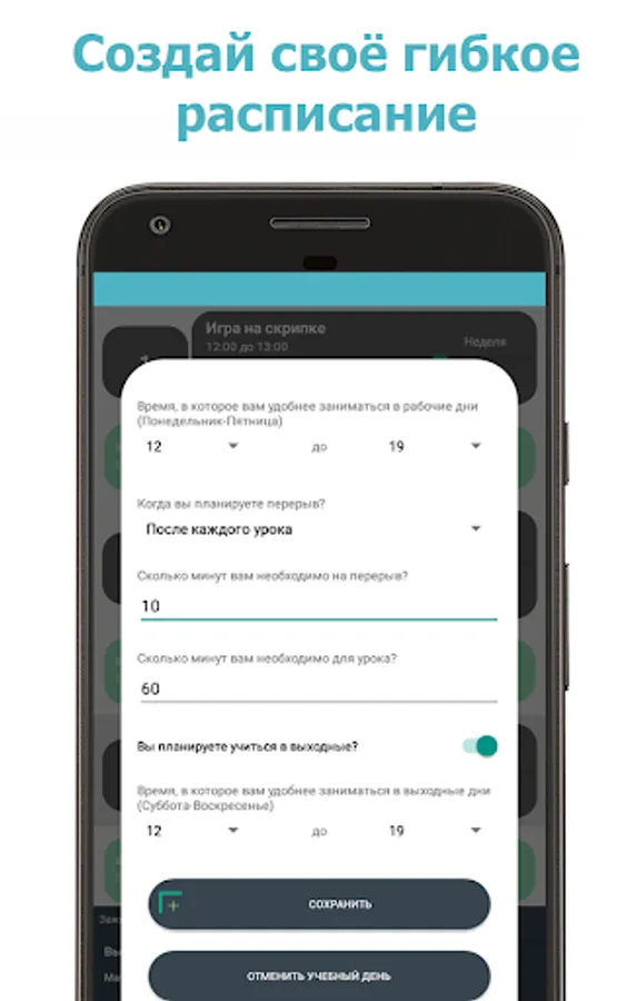 3. After all the necessary subjects have been created in the curriculum, we proceed to the construction of the timetable (the Schedule tab). In the schedule settings, you can specify the period in which you are ready to study and how much you are ready to study.