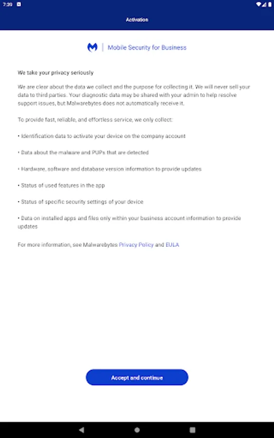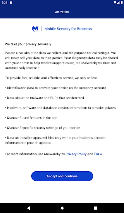 Malwarebytes Mobile deploys quickly and easily. You have the option to use