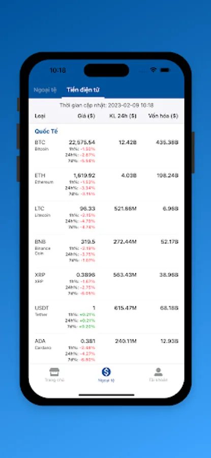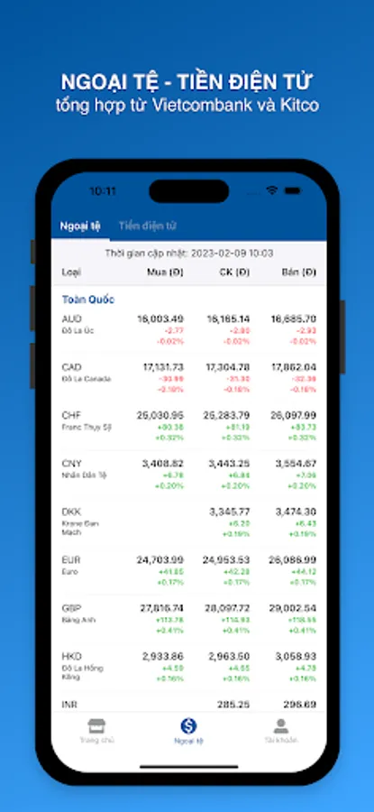 The application to view Gold Price, Foreign Exchange Rate, Cryptocurrency Price, Bank Interest Rate continuously updates data from big companies SJC, DOJI, PNJ, Bao Tin Minh Chau, Bao Tin Manh Hai, Kitco, Vietcombank , VietinBank, BIDV and other big banks.