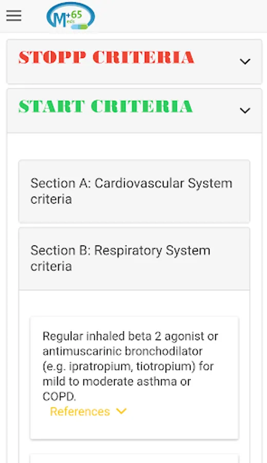 +65Meds aids healthcare professionals to assess the appropriateness of the medications used in patients above 65 years old. The recommendations are based on the second version of STOPP/START criteria published in 2014.