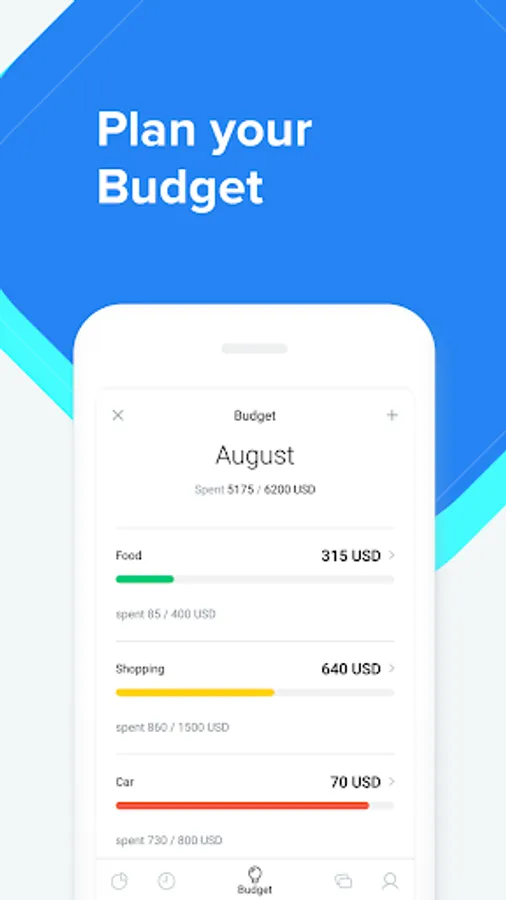 Turn the budget option on and set limits for each category to keep an eye on your expenses not to spend more than you want.