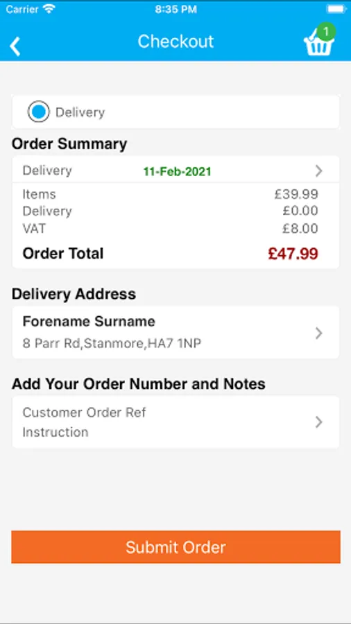 4. Place your order, then click and submit (partial orders can also be saved in the cloud to finish at a later date, on any compatible device)