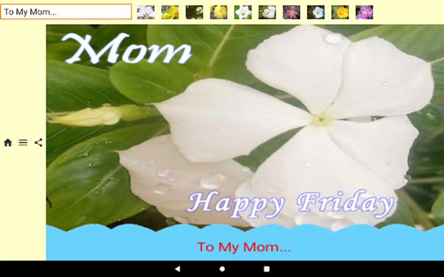 Messages for Mothers is a free Android application with images dedicated to the one who conceived your life, provided a happy and healthy environment, taught and gave love without asking for anything in exchange. Beautiful images with messages for mothers in Portuguese, English and Spanish to be sent every day of the year and on the day that is dedicated exclusively to them: the mother's day. You can still use photo captures with a camera, type and record a message dedicated to your darling mother, you can send it or share it on WhatsApp, Facebook, Instagram and other Social Networks.