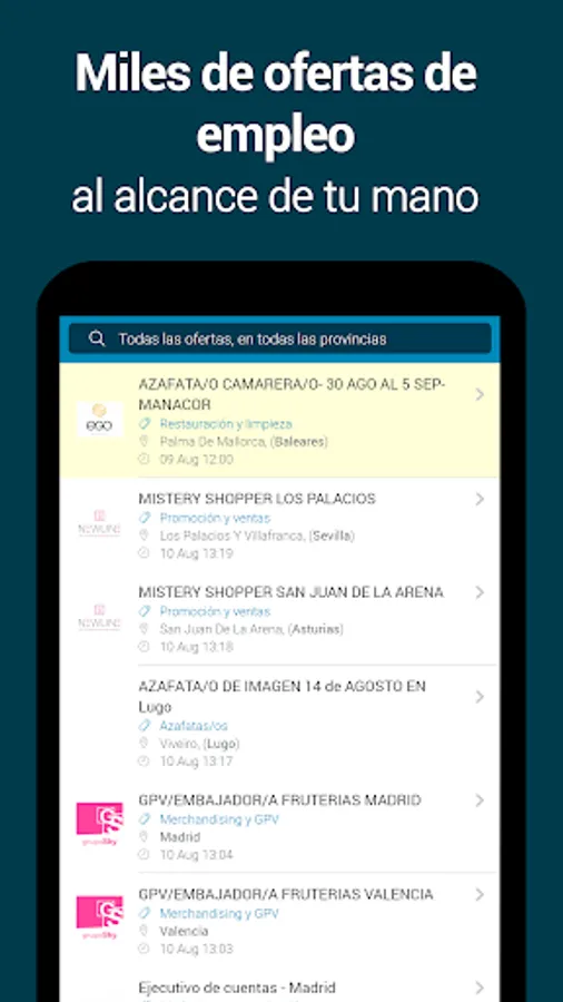 Enter the Yobalia app and find the job you are looking for! Part-time or full-time, temporary or stable job offers.
