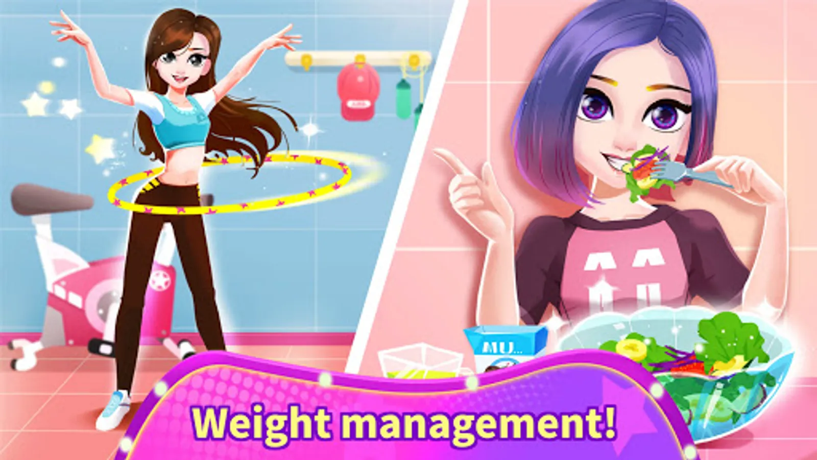 In order to be a fashion model, weight management is very important! Put on your cool sportswear. Jump rope or hula hoop? It's up to you. Make delicious salad and keep a healthy diet.