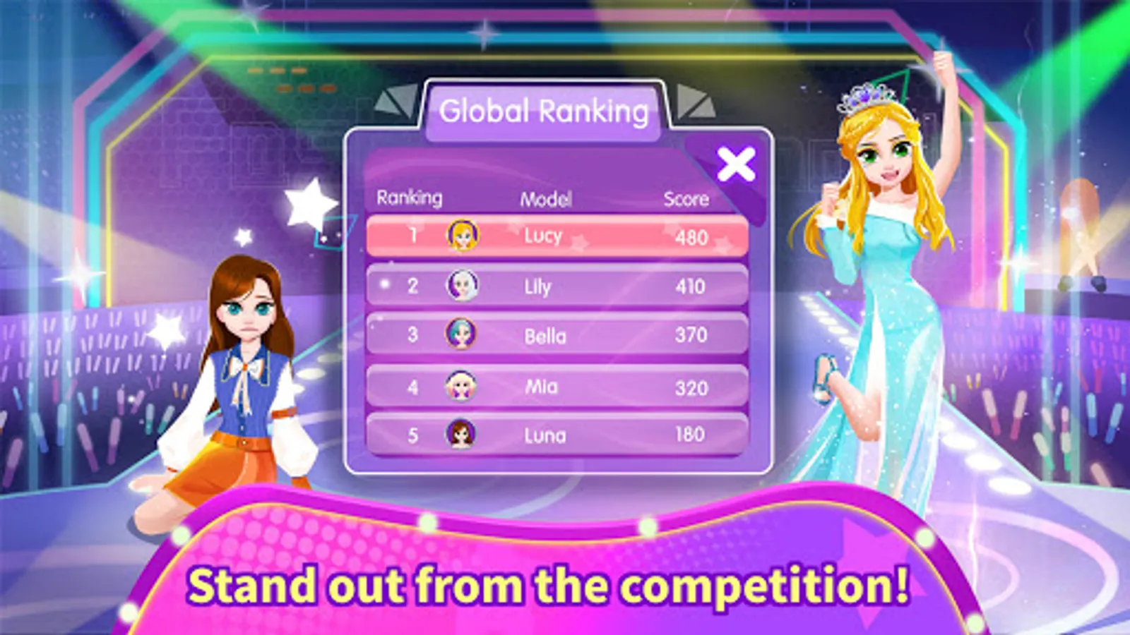 The contest is about to start. Choose a fashionable hairstyle, and then apply eye shadow and lipstick to create a perfect stage makeup! Put on the gorgeous dress and make a glamorous debut on the model contest!