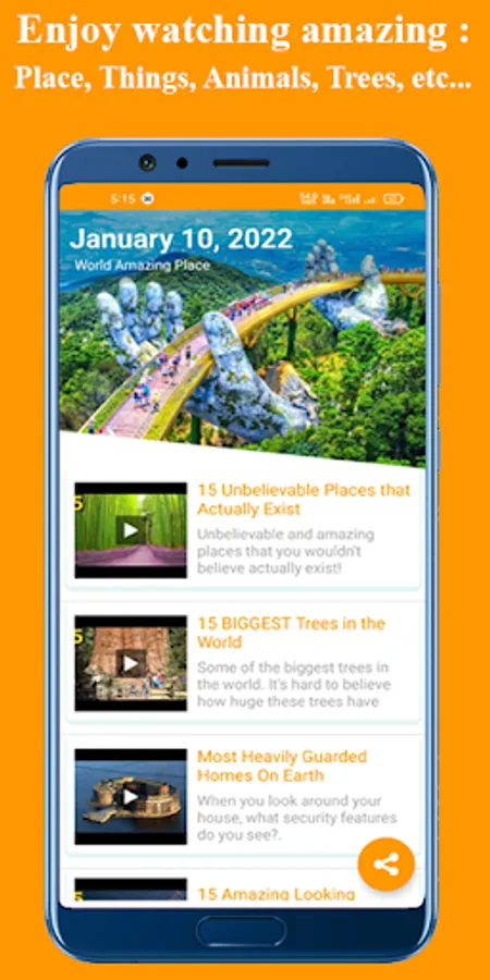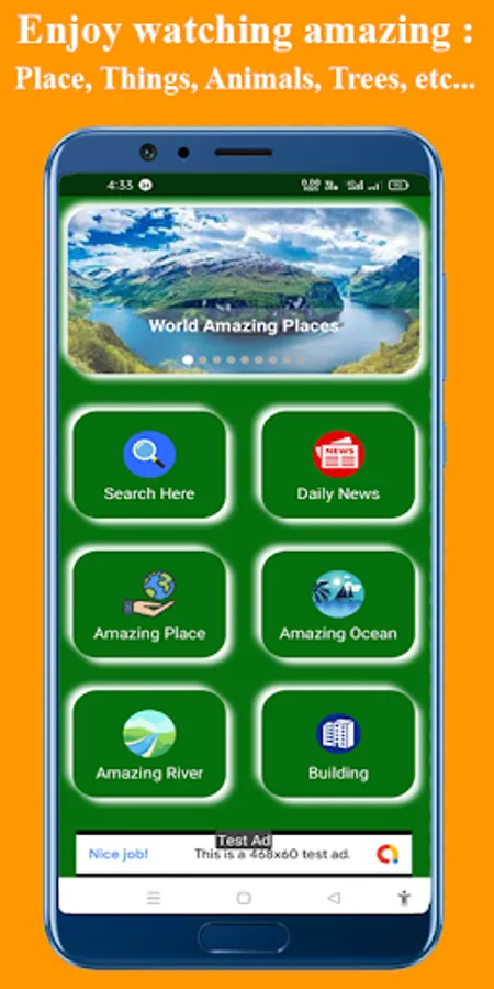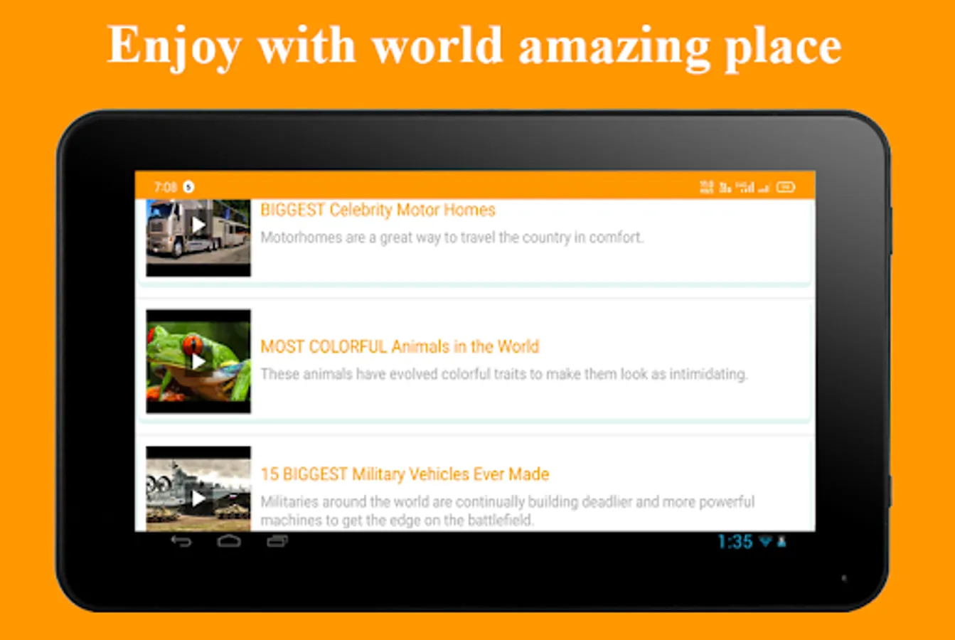 This is a best app, so I am going to say something about this app, there is something in this app that you have never seen before, I also discover in this app world amazing places, interesting facts , animals, trees and things whether you're on holyday tourism. I hope you can enjoy by using this app in your turmoil time, and also you can get knowledge about difference kind of place, animals, rivers, etc... I hope you can regain peace in time of boring. After using this app you can feel how world is beautiful. That's why don't miss this opportunity, if you want to know about the world you can download this app, so don't be late, thank you so much to all users.