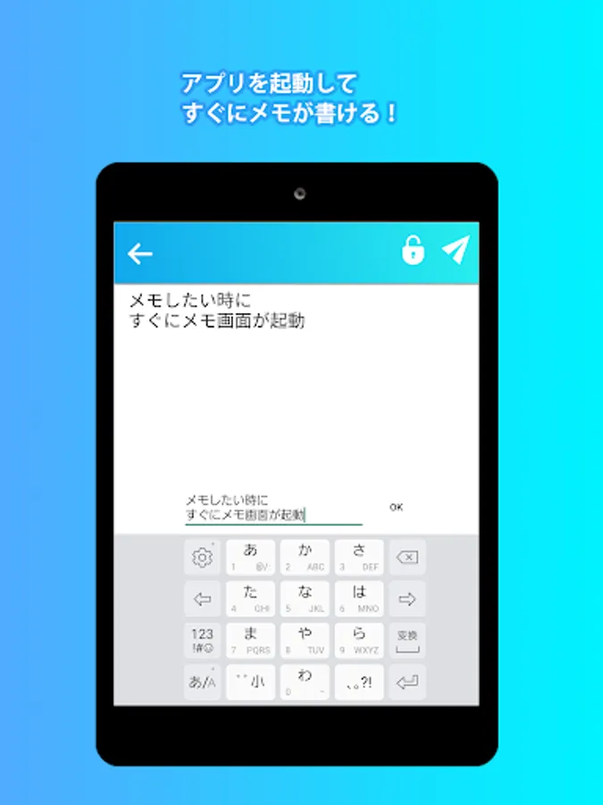 The memo screen opens immediately after startup, so you can take notes immediately.