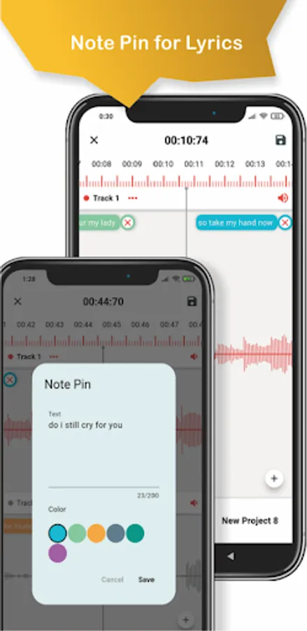 * Lyric Notes: Write and save lyric notes for your songs. Organize lyrics, add references, and other creative ideas to ensure you never lose inspiration while composing songs.