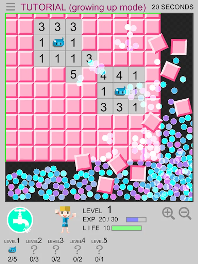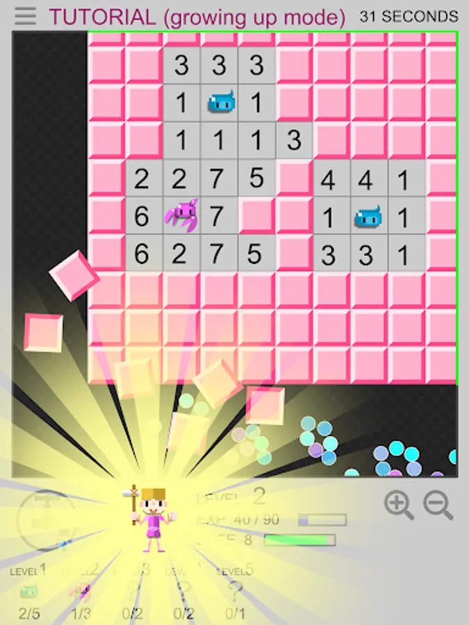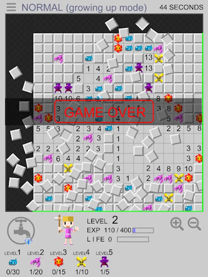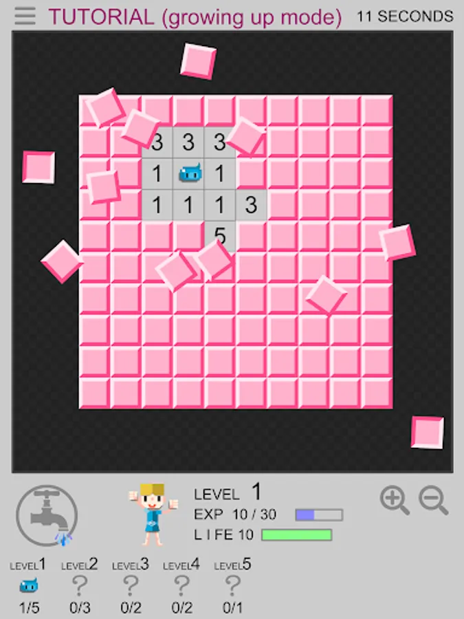 The objective of this game is to beat all "monsters" hiding under rectangular panels,