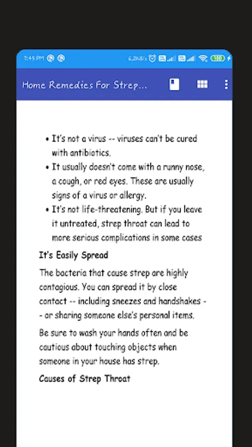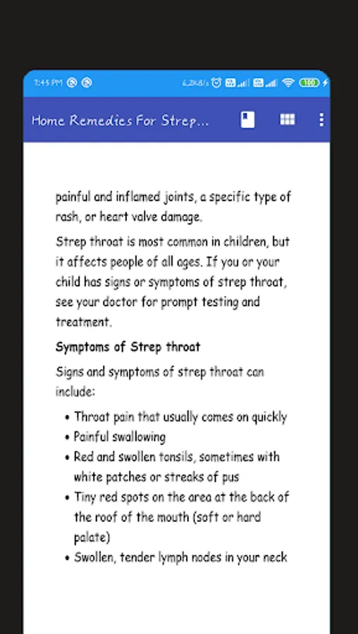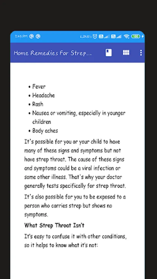 Strep throat is a specific type of sore throat caused by the Group A Streptococcus. Some patients become very ill with this infection, whereas others have no sore throat at all. A young child with a fever, stomachache, and a fine sandpapery rash on the abdomen may have strep throat but not even complain of a sore throat. Usually a patient will have red, swollen tonsils and tender swollen glands. Sometimes strep throat causes white spots on the tonsils or tiny red spots on the roof of the mouth.