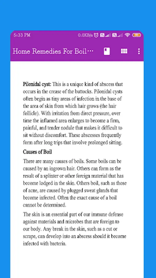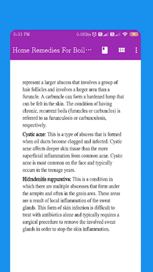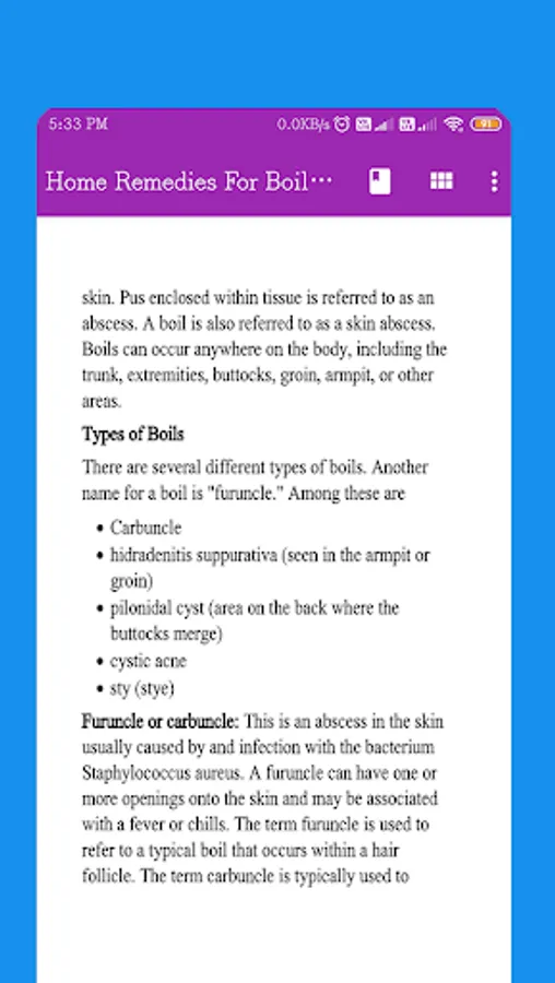 Boil is a sort of skin disorder that occurs when the bacterium staphylococcus infects the hair follicle or oil gland. The bacterium enters the body through minor cuts or breaks in the skin. Initially the skin gets reddened and forms a tender lump that may be quite painful. Gradually the lump hardens in to a crusty mound, the centre of which is filled with infection-fighting white blood cells and proteins. These white blood cells and proteins become watery and are collectively referred to as 'pus'. The infection may often affect the deeper tissues, resulting in the formation of an abscess. Our eyelids, face, neck, shoulders, armpits and buttocks are regions more prone to boils. There may be several types of boils. The types may be discussed as follows.