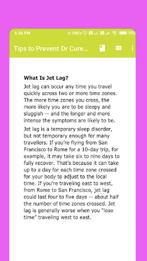 My first true experience with jet lag occurred on my first trip overseas to London and after that experience, I vowed to learn the secrets of avoiding jet lag. I had a red eye flight from JFK to Heathrow and arrived at my hotel around mid-day. I was so extremely tired when I checked in to my hotel that I proceeded to take a very long nap. This was exactly the wrong thing for me to do as it took several days before I eased into the rhythm and flow of London's time zone. I've since learned a lot of tips for avoiding jet lag and no longer have my trips sidelined by it.