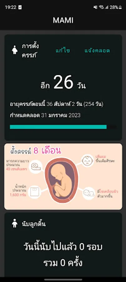 Mami, an application for mothers There is a helper to track the gestational age. counting the tinsel Including introducing knowledge about nutrition and advice on taking care of yourself while pregnant.