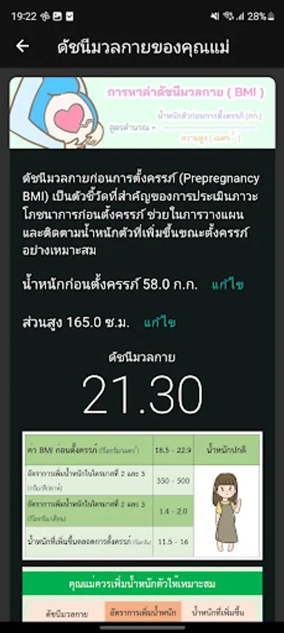 Calculate BMI before pregnancy and can record the weight gain To help you plan and track your weight while pregnant.