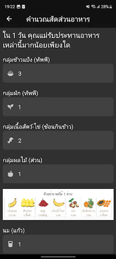 Gather knowledge about the recommended foods consumed per day. food exchange category energy and nutrients that should be received Including how to eat when having diabetes food and allergies and foods to avoid