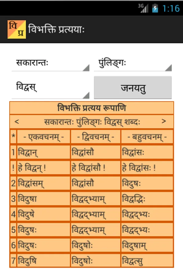 ViPra helps you create a table of declination for a selected word. This app uses Devanagari script to render tables.