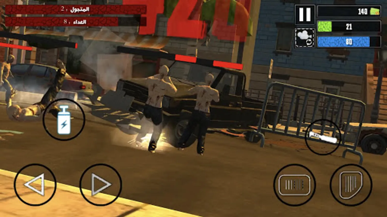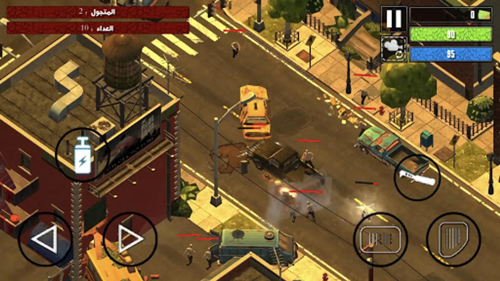 - Machine-gun, shotgun, rocket launcher, electric gun to unlock and use against the dead