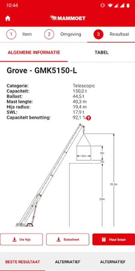 If you are satisfied with your outcome, the Crane Configurator offers the possibility to quickly get in touch with one of our branches for your request.