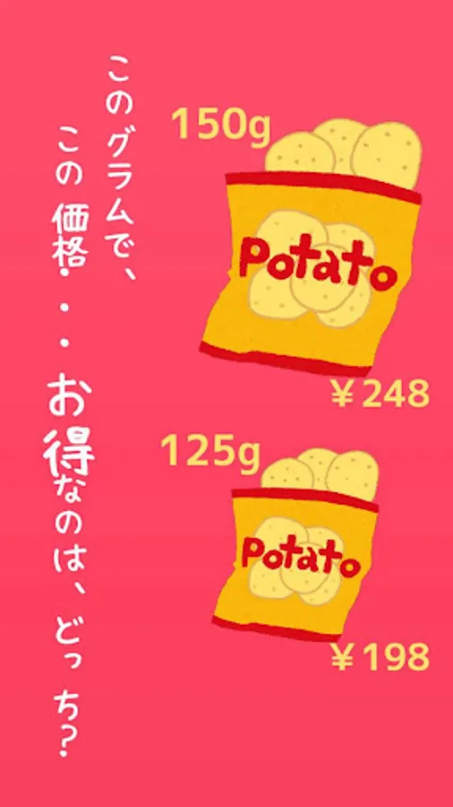 It is a simple calculator app that will tell you the goods of the cheapest price (unit price)