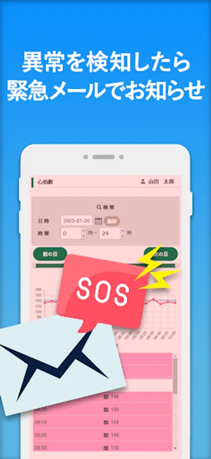 You can always monitor the physical condition of your parents who wear the terminal, heart rate, blood pressure, body temperature, breathing, location information. , you can receive notifications by urgent mail.